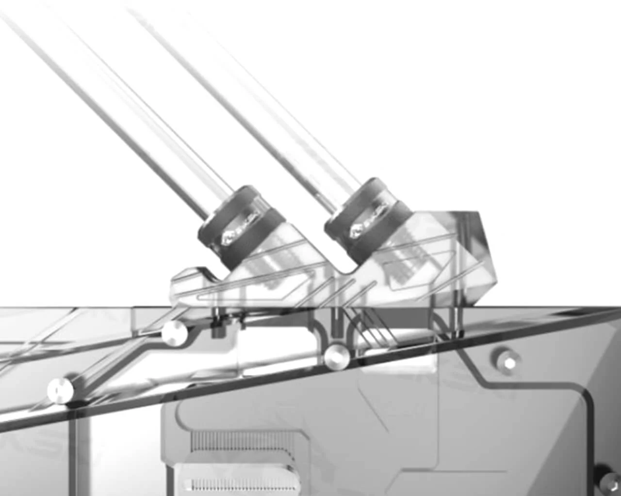 The Bykski GPU 45 degree connection upgrade block can be used to swap out the standard fitting connection block. The upgrade block is a sleek and aesthetically pleasing connection block.