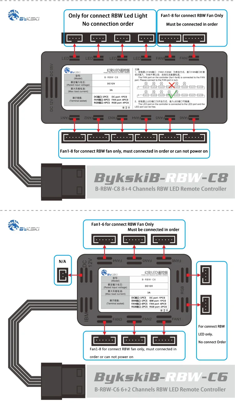 Bykski 8+4 5V Addressable RGB (RBW) Light Controller Module (FR-B-RBW-C8)