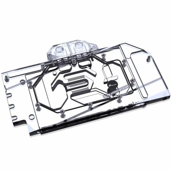 The Bykski Full Coverage GPU Water Block for MSI RTX 3080/3090 GAMING X TRIO is a work of art! This entire coverage block directly cools the video card core (GPU), graphics memory (RAM), and voltage regulator module (VRM). By directly cooling these components you can achieve great temperatures along with the ability to reach higher overclocks or extend the overall lifespan of your card by running at below factory temps.
