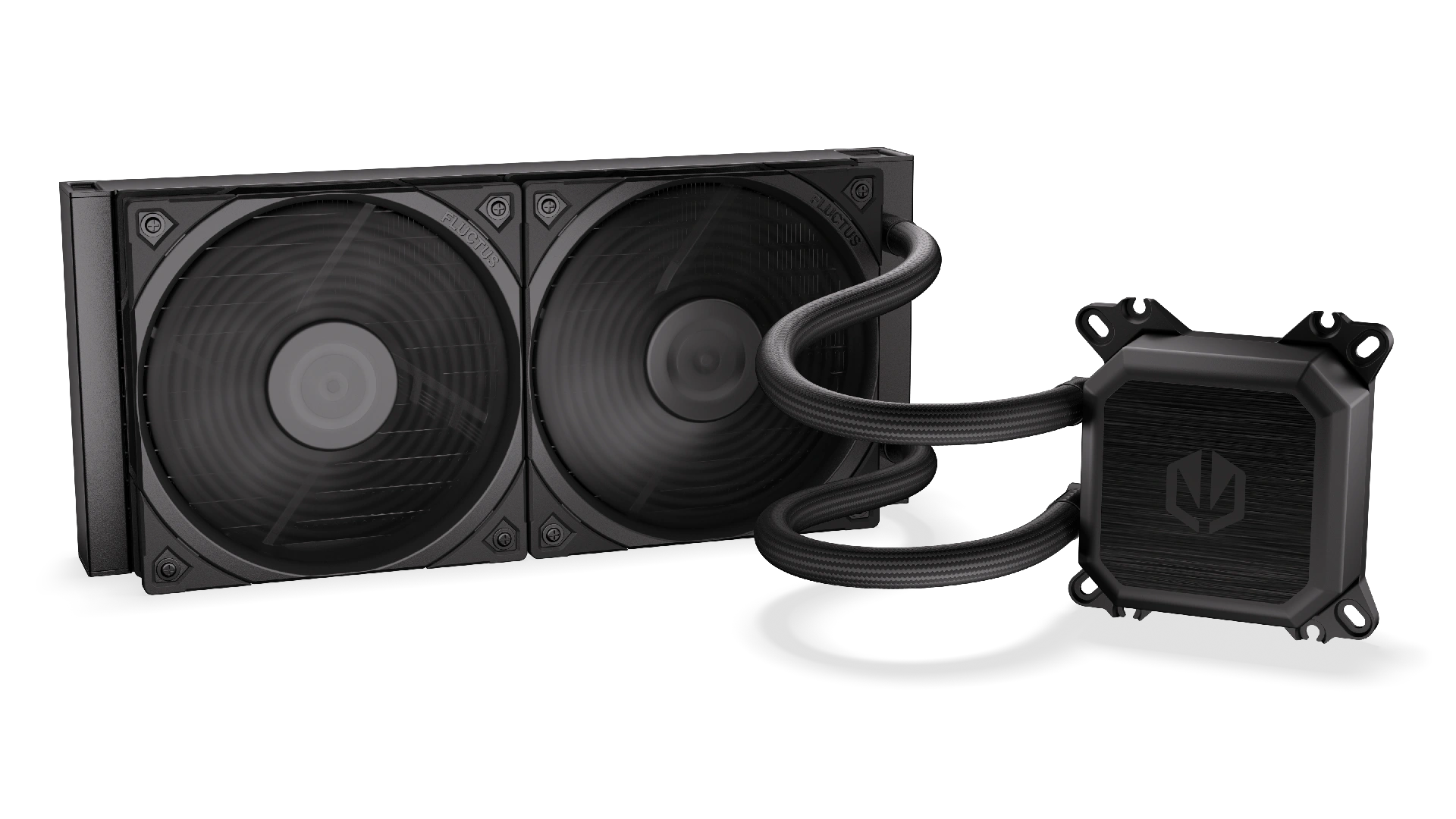 At its heart is a silent pump-in-block setup with a ceramic bearing and PWM speed control. It’s paired with a 240 mm radiator and two preinstalled Fluctus 120 PWM fans. This compact AIO cooler will fit in most standard cases.