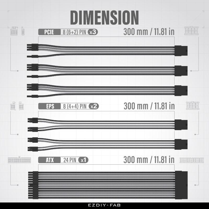 Builder-Friendly Length – 30cm (11.8″) extensions simplify routing behind the motherboard tray.