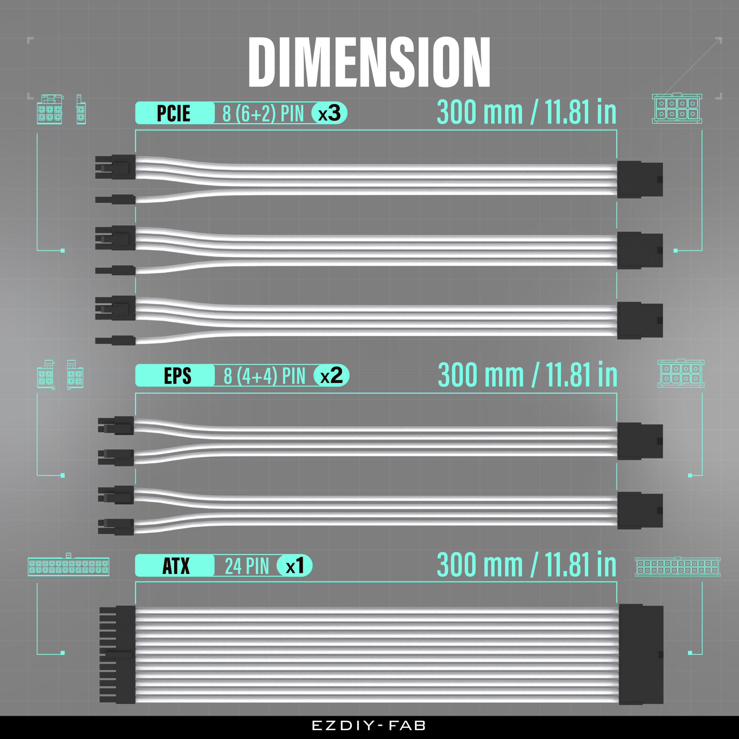 Builder-Friendly Length – 30cm (11.8″) extensions simplify routing behind the motherboard tray.