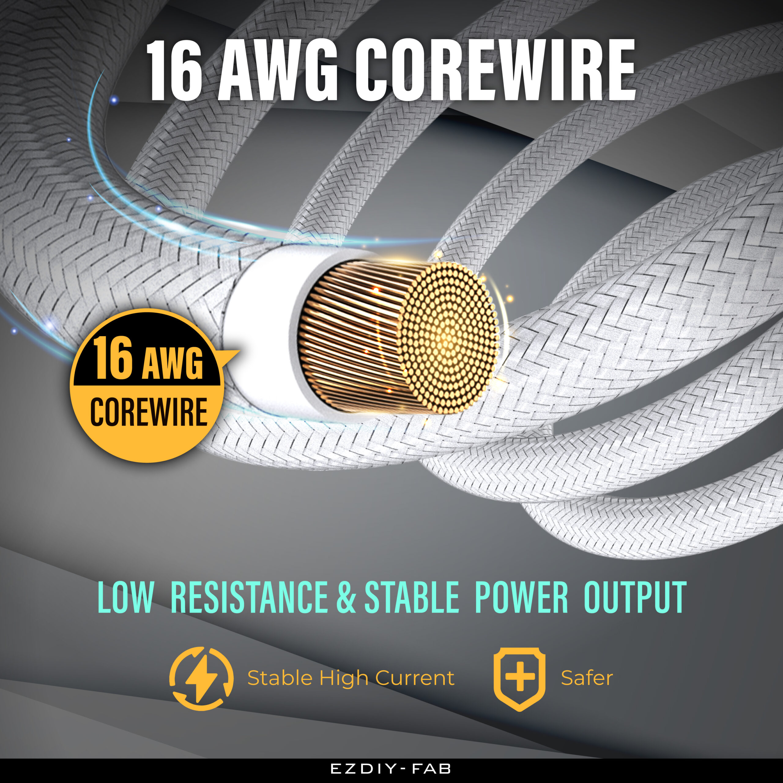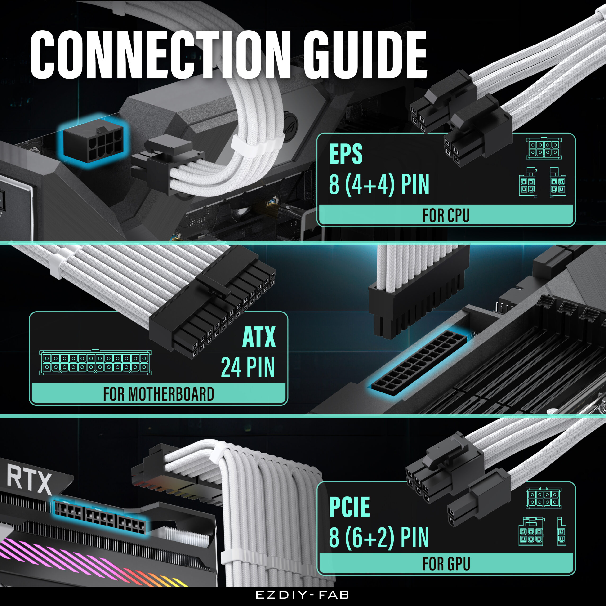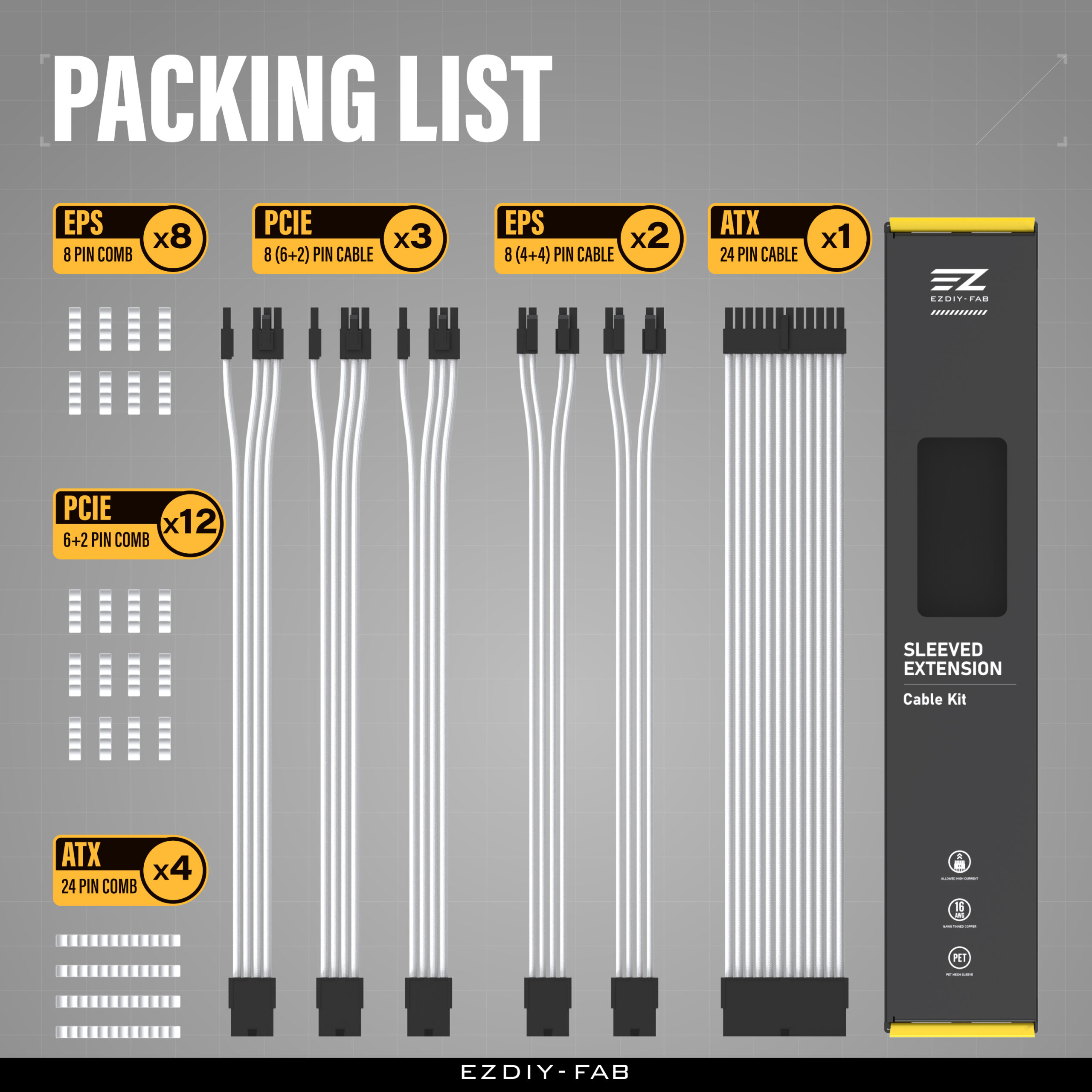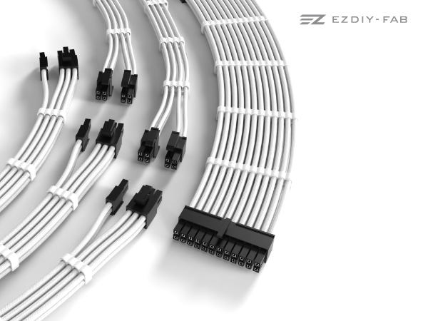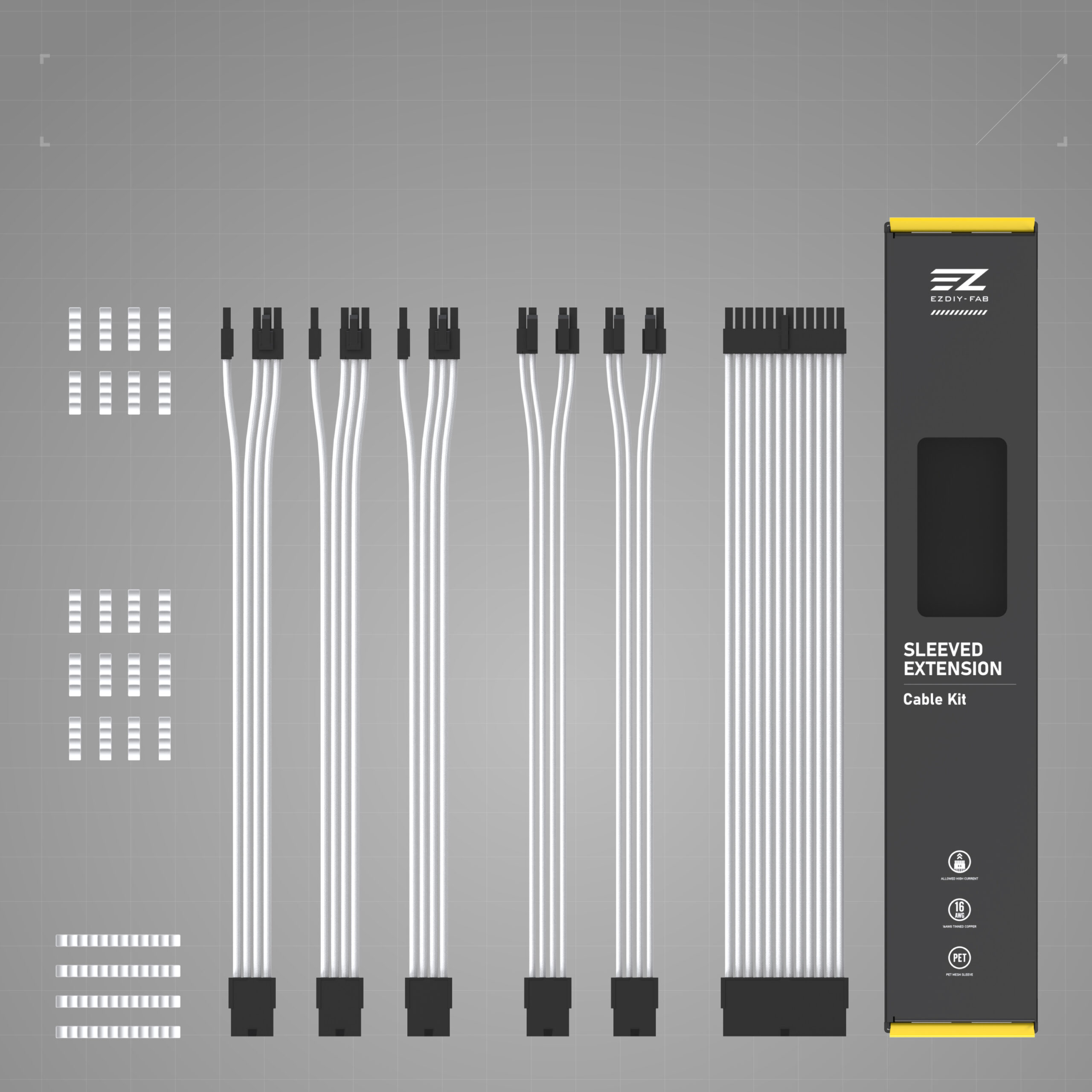 EZDIY-FAB 16 AWG PSU Premium Nylon Sleeved Extension Cable Kit – White