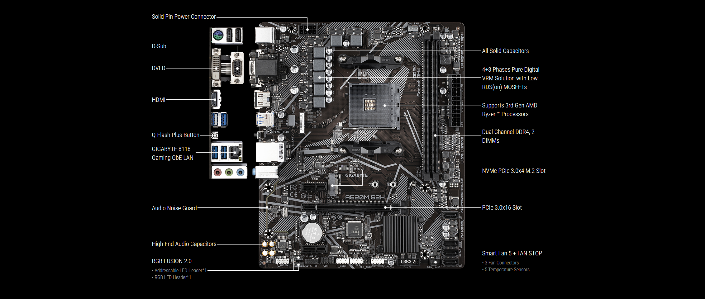 GIGABYTE A520M-S2H – Micro ATX AMD Motherboard